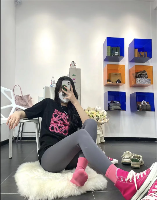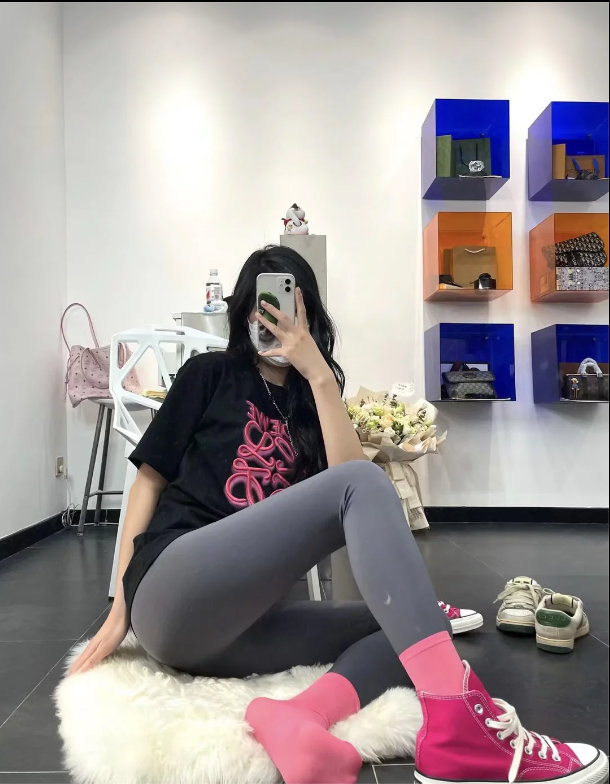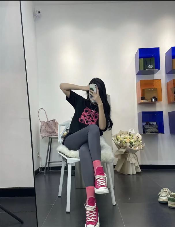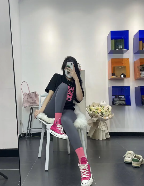粉袜配瑜伽裤